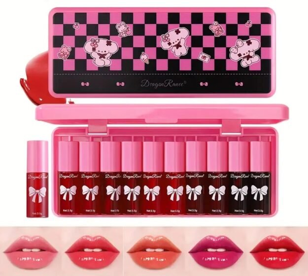 Set de 10 labiales hidratantes luminosos y brillantes.